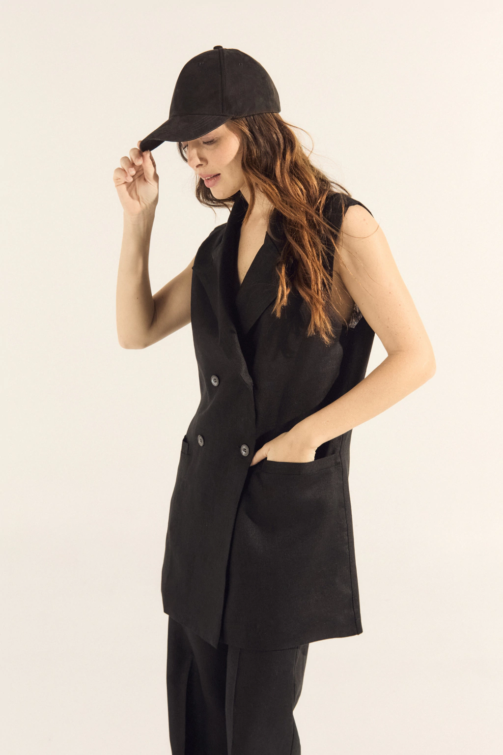 Chaleco de lino puro. Tiene el corte clásico con un toque oversize.