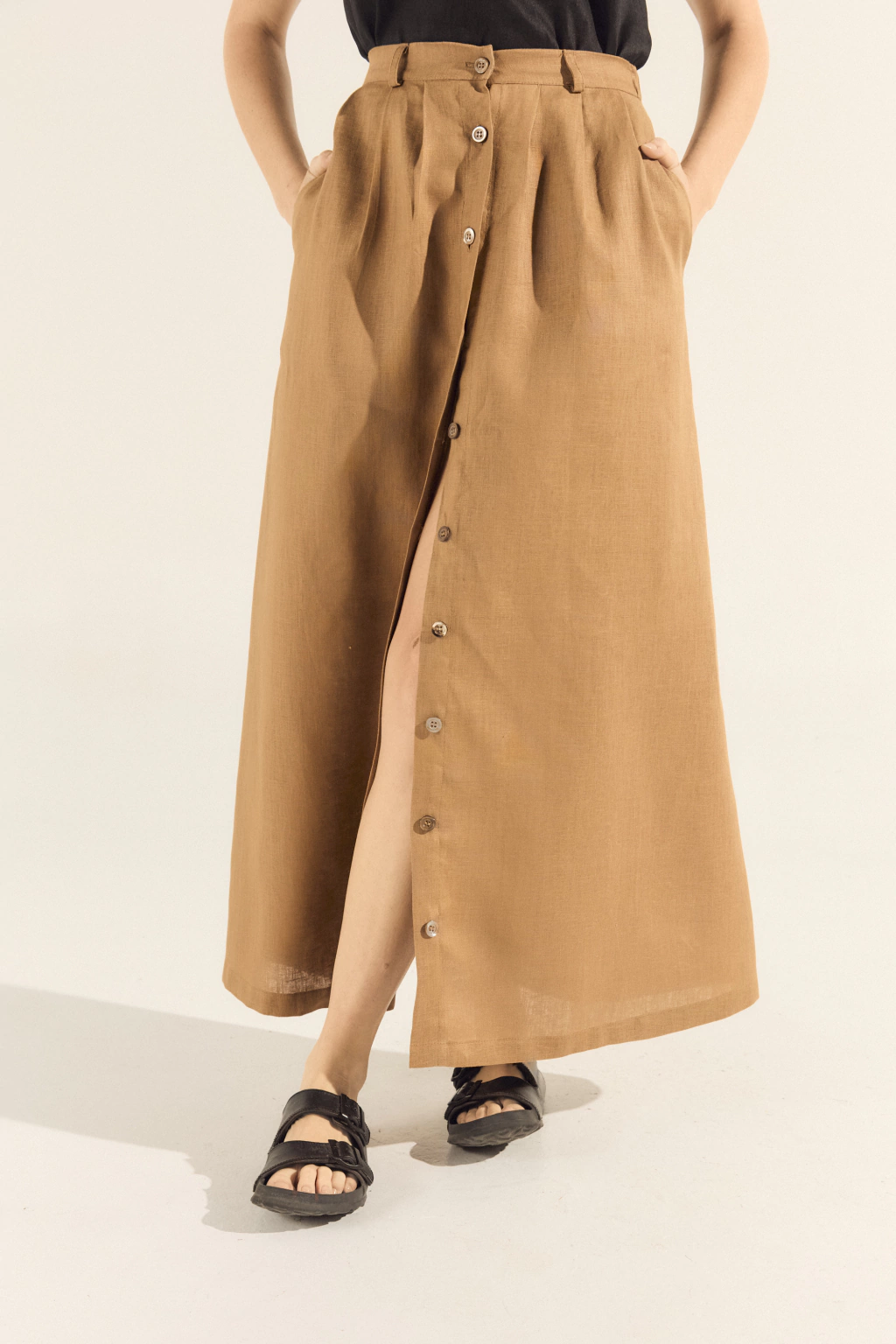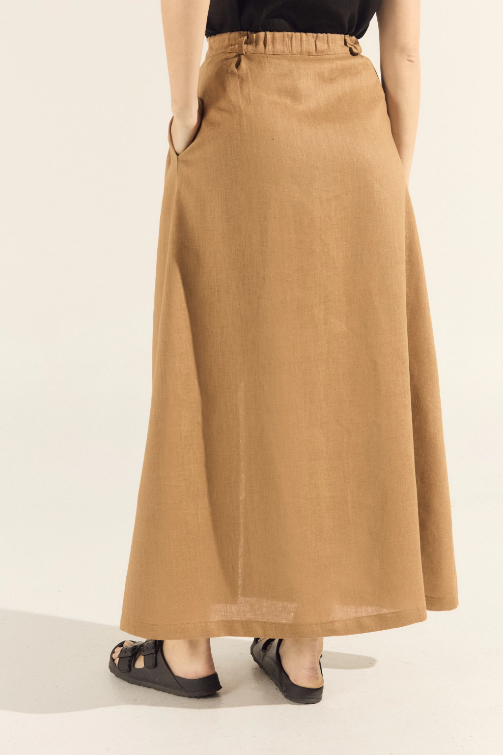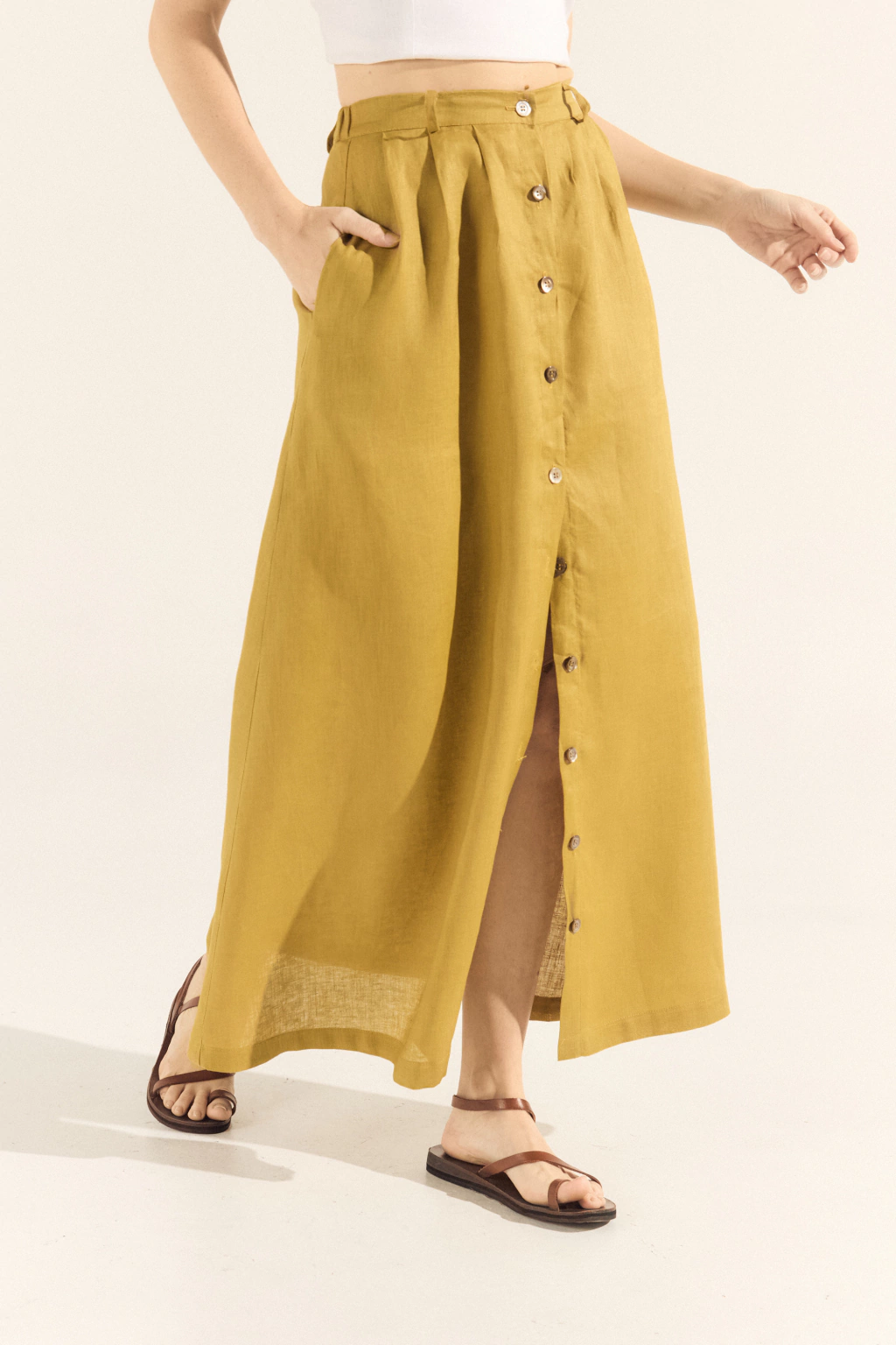 Hermosa falda de lino 100% natural. Repleta de detalles que la hacen una prenda más que versátil y atemporal.