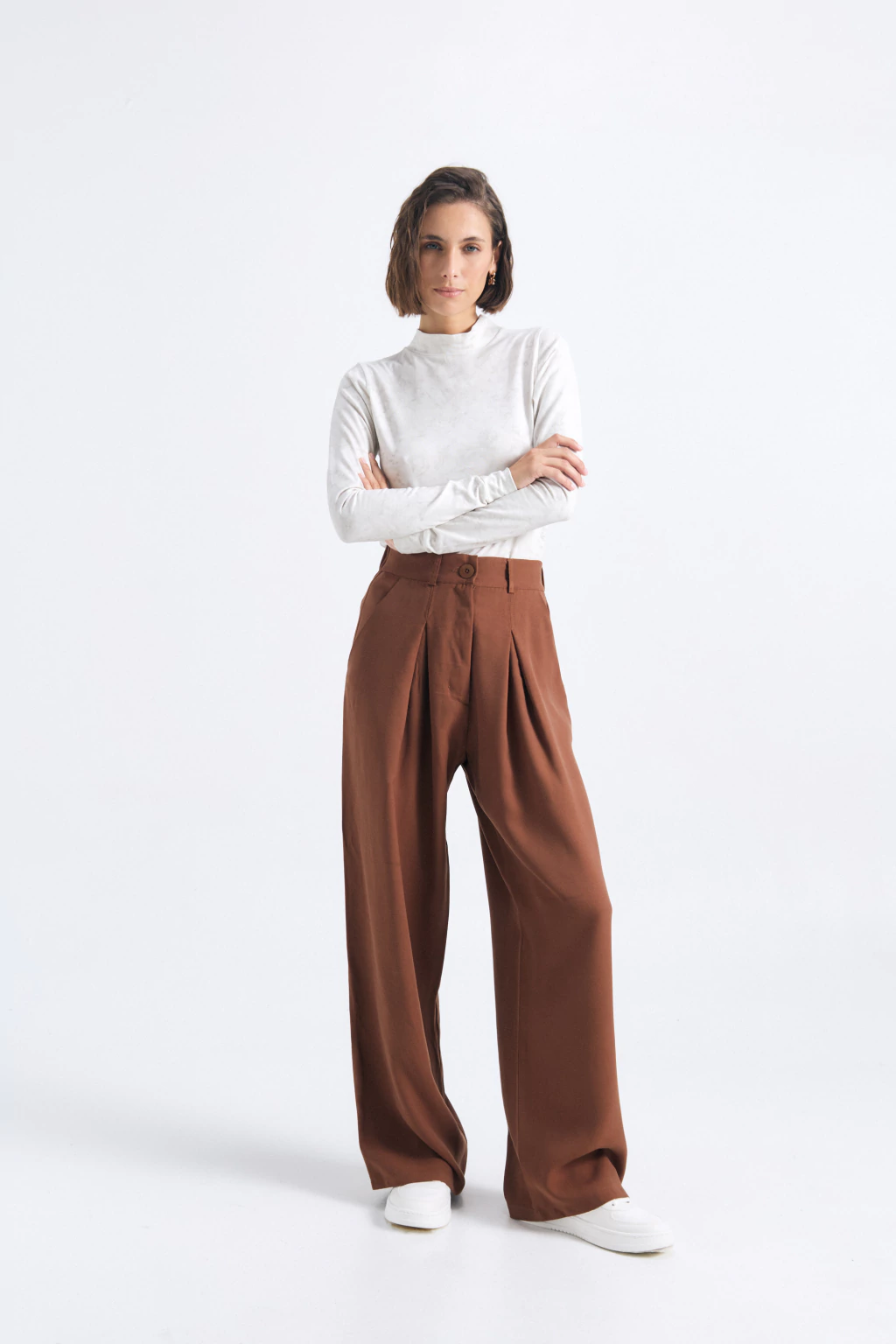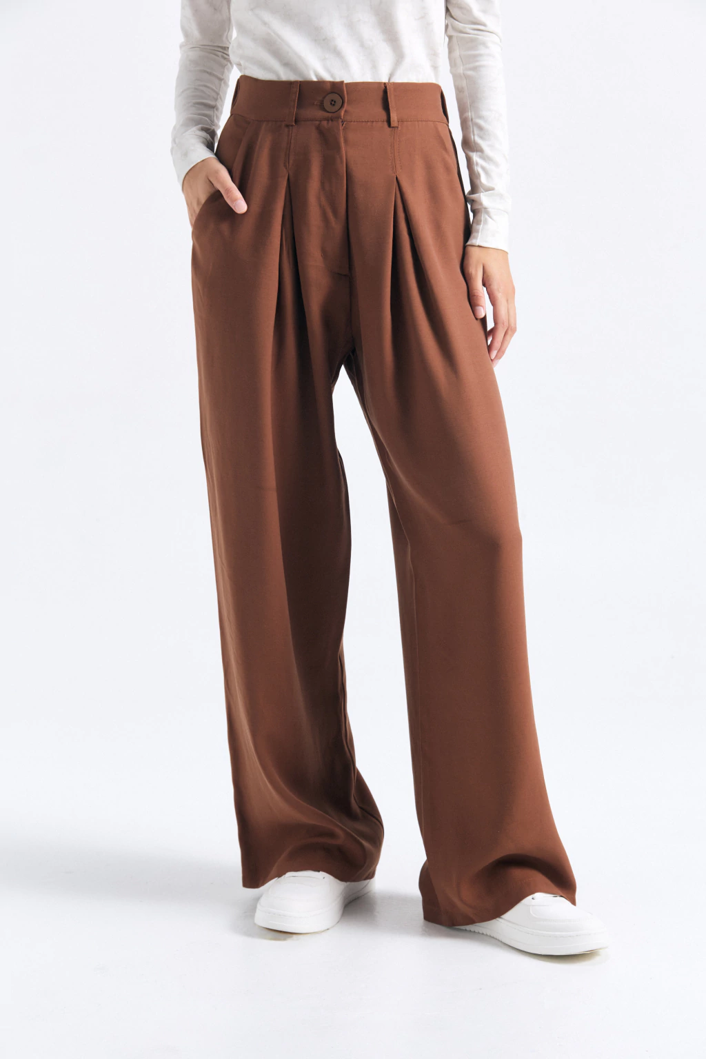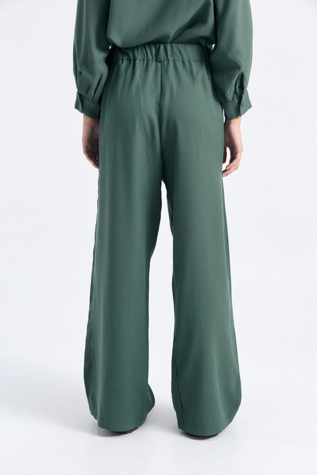 Pantalón sastrero tiro alto medio, con elástico en la parte trasera y con el corte justo entre un palazzo y un pantalón recto. Tiene bolsillo al frente con pinzas amplias que le dan un toque cancherísimo