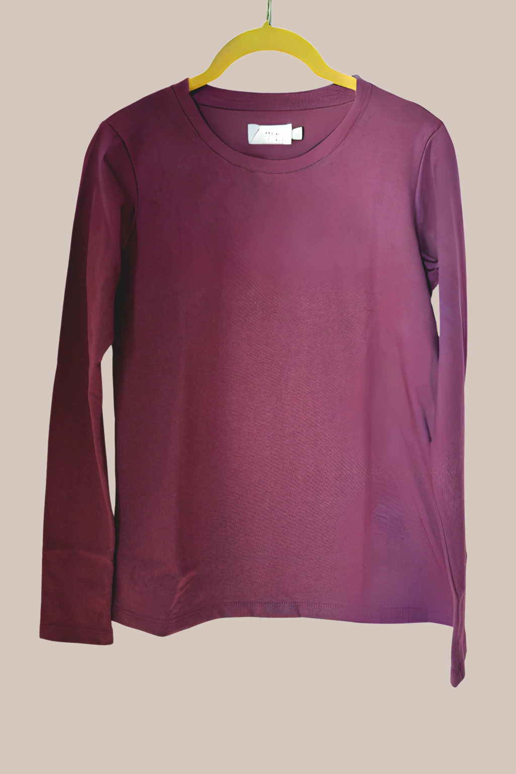 Remera 100% algodón, de escote redondo y mangas largas.