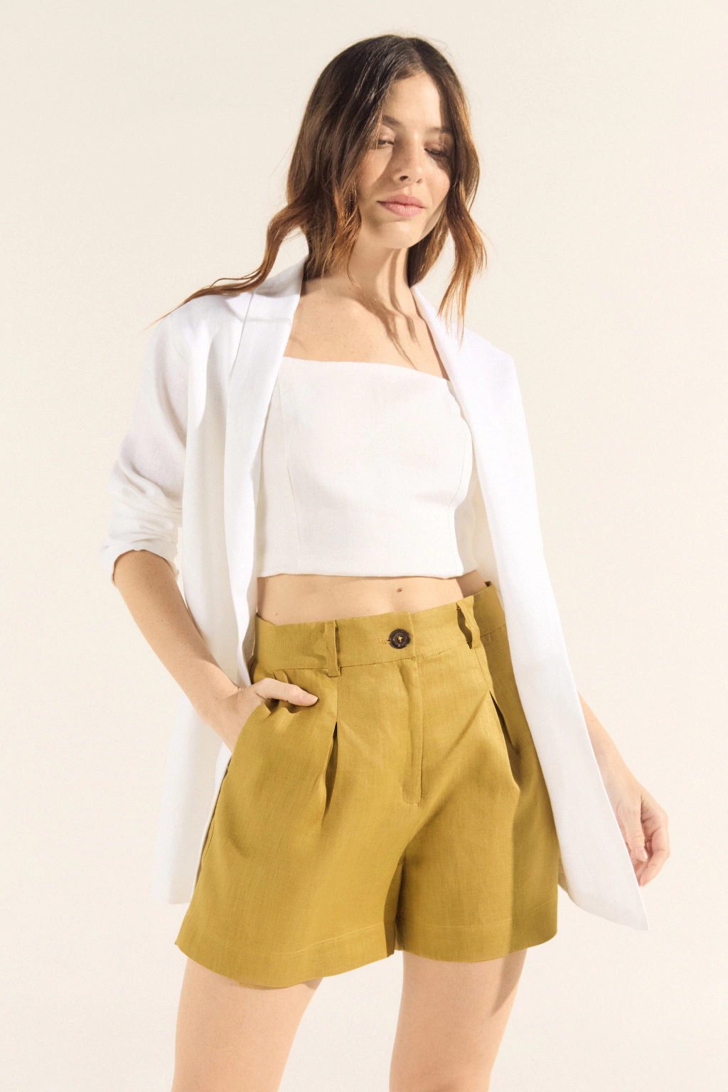 Shor 100% lino. Tiene un largo intermedio entre short y bermuda dandole más versatilidad a su uso. Pinzas al frente, bolsillos en laterales. Comódismo.